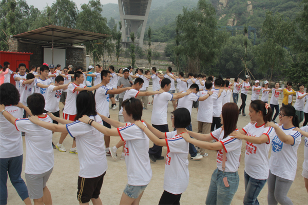 著青春的裝束,展現(xiàn)青春的風(fēng)采,北京影響力全體員工以英姿颯爽的精神風(fēng)貌展現(xiàn)在教練面前,伴著一聲高亢且嘹亮的“非常好”,教練以北影人最熟悉的游戲?yàn)榇舜瓮卣褂?xùn)練拉開(kāi)了帷幕。“阿水的故事”拉近了彼此的距離;消除了人與人的陌生感;增強(qiáng)了團(tuán)隊(duì)間的凝聚力和互動(dòng)性,其樂(lè)融融的氛圍為接下來(lái)的訓(xùn)練打下了良好的基礎(chǔ)。為更好的推動(dòng)此次拓展訓(xùn)練的進(jìn)程,調(diào)動(dòng)大家的積極性,教練將全員分為四個(gè)小組,進(jìn)行兩兩PK。隊(duì)伍一確立,濃郁的“火藥味”便散布開(kāi)來(lái),在確定好每隊(duì)的隊(duì)名和隊(duì)呼后,小組成員似乎已經(jīng)按捺不住表達(dá)心中的欣喜與好奇、按捺不住猜測(cè)PK的項(xiàng)目與對(duì)手,但無(wú)論多么激烈的比拼,都是在展示北影人的青春風(fēng)采!