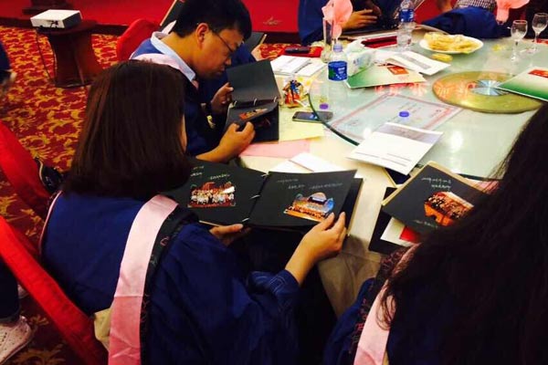 畢業(yè)典禮中,優(yōu)秀學(xué)員代表紛紛上臺(tái)領(lǐng)獎(jiǎng),并與大企北京影響力的高管們留下珍貴合影。畢業(yè)典禮結(jié)束時(shí),沈陽(yáng)分公司為學(xué)員們送出了用心準(zhǔn)備的DIY手工相冊(cè)。相冊(cè)中記錄了這一年來(lái)39班課程以及活動(dòng)的點(diǎn)點(diǎn)滴滴,寫(xiě)下了班主任對(duì)39班的真心寄語(yǔ),濃濃的同學(xué)之情盡現(xiàn)紙上。