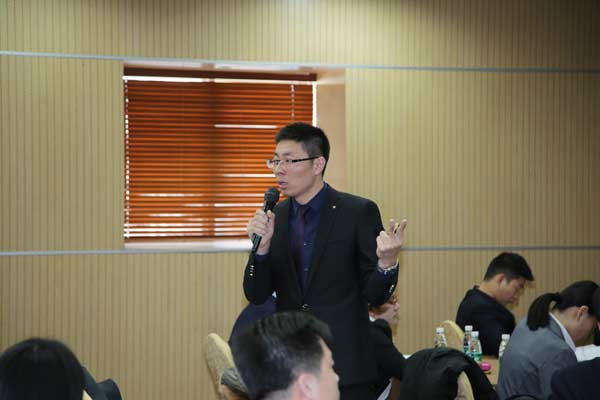 然后,大企·北京影響力文海煒文總以“正在發(fā)生的未來”的角度,解讀了正在探索中的大企·北京影響力“互聯(lián)網(wǎng)轉(zhuǎn)型”與戰(zhàn)略構(gòu)思,還通過企業(yè)文化升級項目肯定了大企·北京影響力12年來文化沉淀的力量,對未來文化可能要加入的因素給予鋪墊。緊接著,文總就“拿單利器 服務(wù)法寶T-S”的話題,分析了T-S背后的深遠意義和未來的操作。接下來,大企·北京影響力王雪冰王總分享了卓有成效的管理者的核心要素并公布了“2016年3-4月營銷激勵方案”,打響了百萬商特沖鋒戰(zhàn)。隨后,大企·北京影響力趙繼增趙總通過“未雨綢繆 緊抓機遇”的智慧分享,帶大家走出職業(yè)生涯誤區(qū),做好準備,迎接機遇并提及了2016年運營的整體總方向。第一天的培訓(xùn)過程中還針對部分課程開放了20分鐘左右的答疑時間。