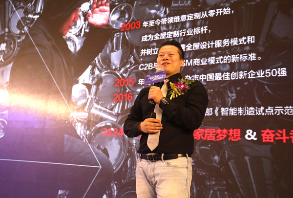 我們銷量越來越大,到了2006年3、4月份,訂單雪片般地飛來,可那些合作企業(yè)紛紛拒絕我們的訂單,原因是訂單難做,每一塊板都不一樣,還這么多顏色,成本受不了。于是在2006年到2014年期間,我們選擇了繼續(xù)做軟件,同時我們用互聯(lián)網(wǎng)來改變生產(chǎn)模式。今天我們又有了新的突破,在我們定制生產(chǎn)線上,慢慢地有我們自己企業(yè)自主研發(fā)的一些智能化設備在里面應用了。這一次的轉型,我們發(fā)現(xiàn)沒有制造,一切定制都是假的,做定制就是做個性化服務,就是客戶需要什么我們就設計什么、生產(chǎn)什么。這一次的轉型,我們樹立了大規(guī)模全屋定制新標準,掀起了家居行業(yè)的第二次革命。