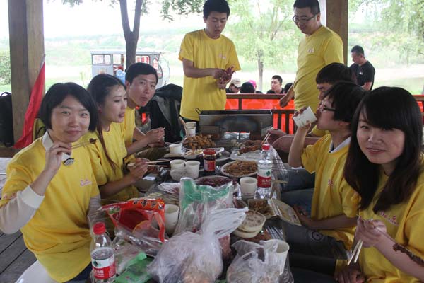 接下來,自助燒烤環(huán)節(jié)開始,伙伴們按組按量按順序領(lǐng)食材,各組分工明確,有條不紊的洗菜、切菜、穿串、點(diǎn)火、生碳……除了分公司準(zhǔn)備的豐富食材外,運(yùn)營中心劉總還增設(shè)了“美食達(dá)人”大比拼項目,展示伙伴們的廚藝,也為我們的飯桌增添了不少美食和別樣風(fēng)味。